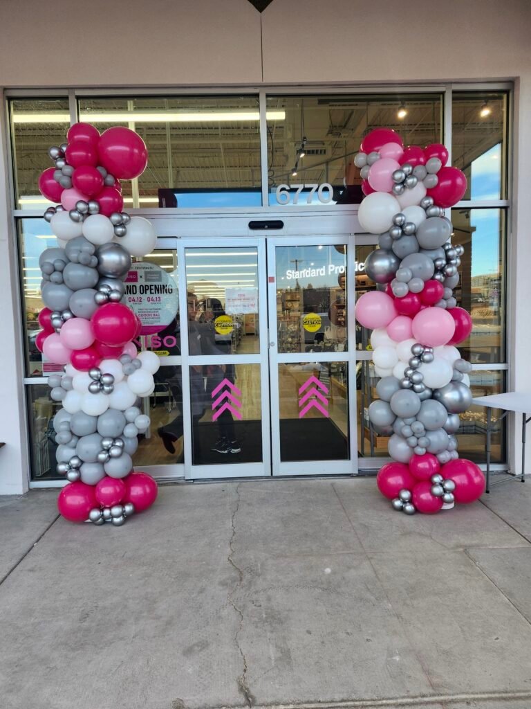 Organic Balloon Column (Balloon Tower) – 8ft tall with choice of round toppers or themed mylars.
