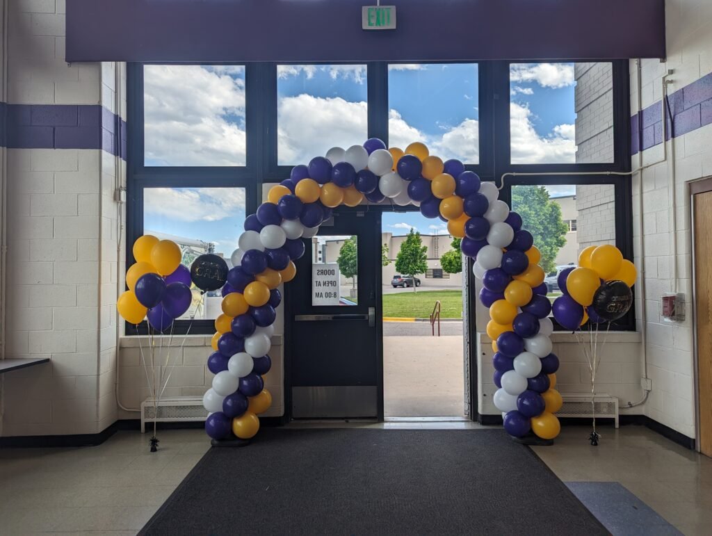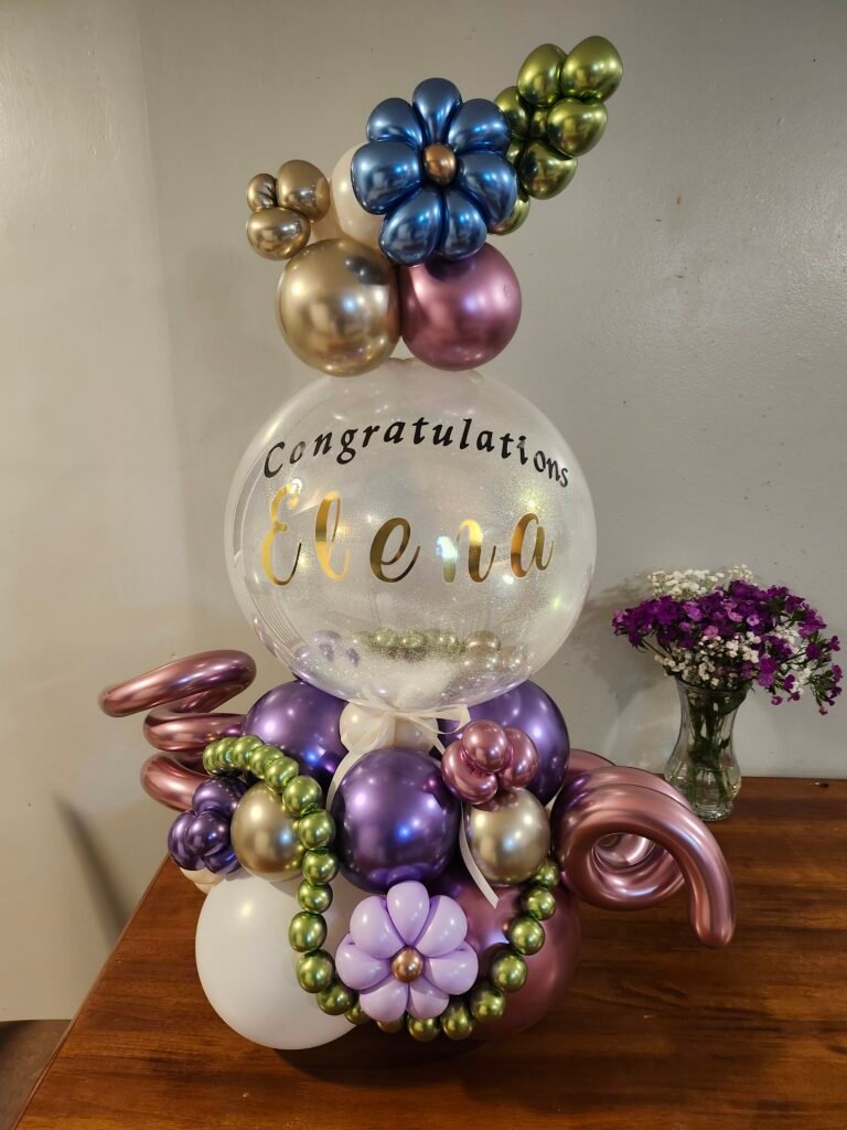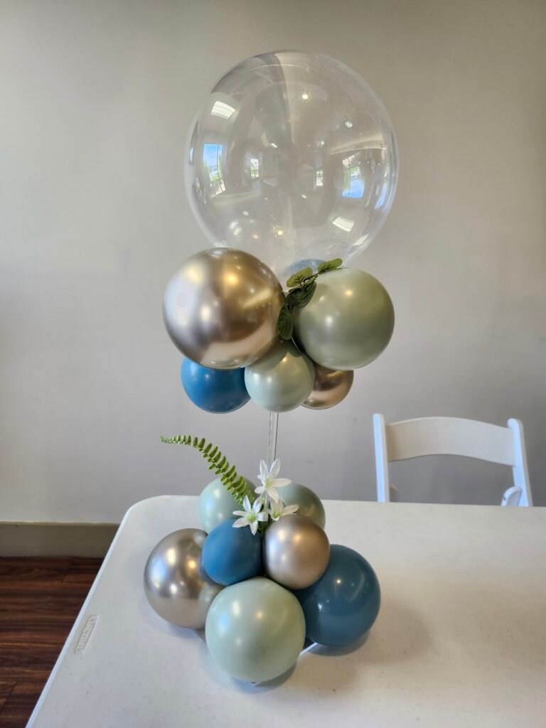Helium Balloon Decorators – Helium filled balloons with ribbon and weights.